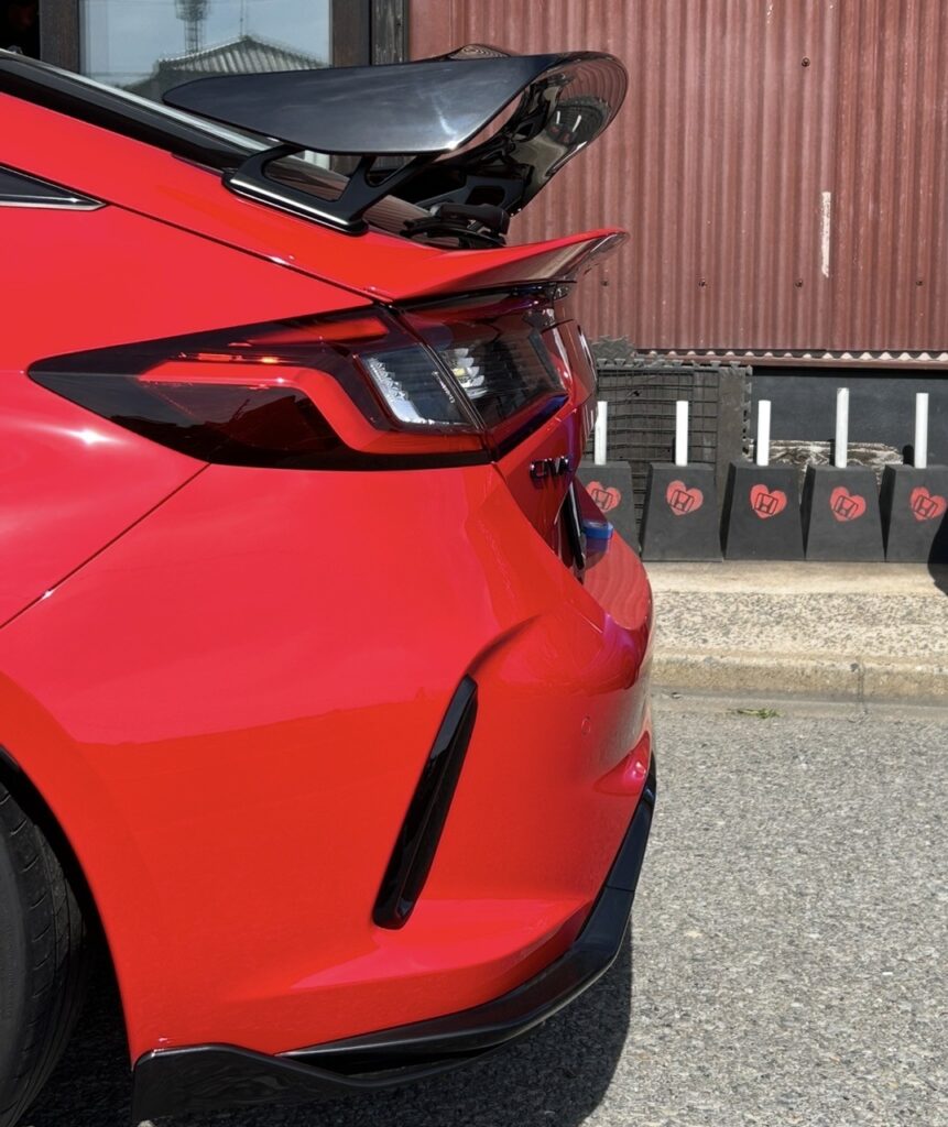 トランクの端まで伸びた形状で一体感が増し、ダックテール形状になります。